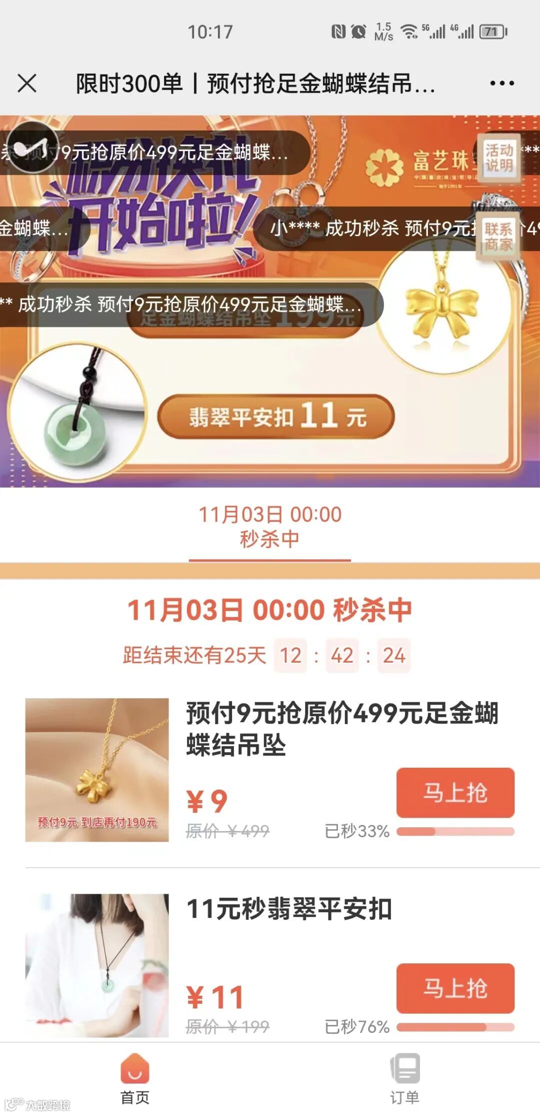 2:完成线上付款后,在领取时间内,根据订单所填【领取门店】前往富艺珠宝线下门店支付剩余金额190元,即可领取足金蝴蝶结吊坠。