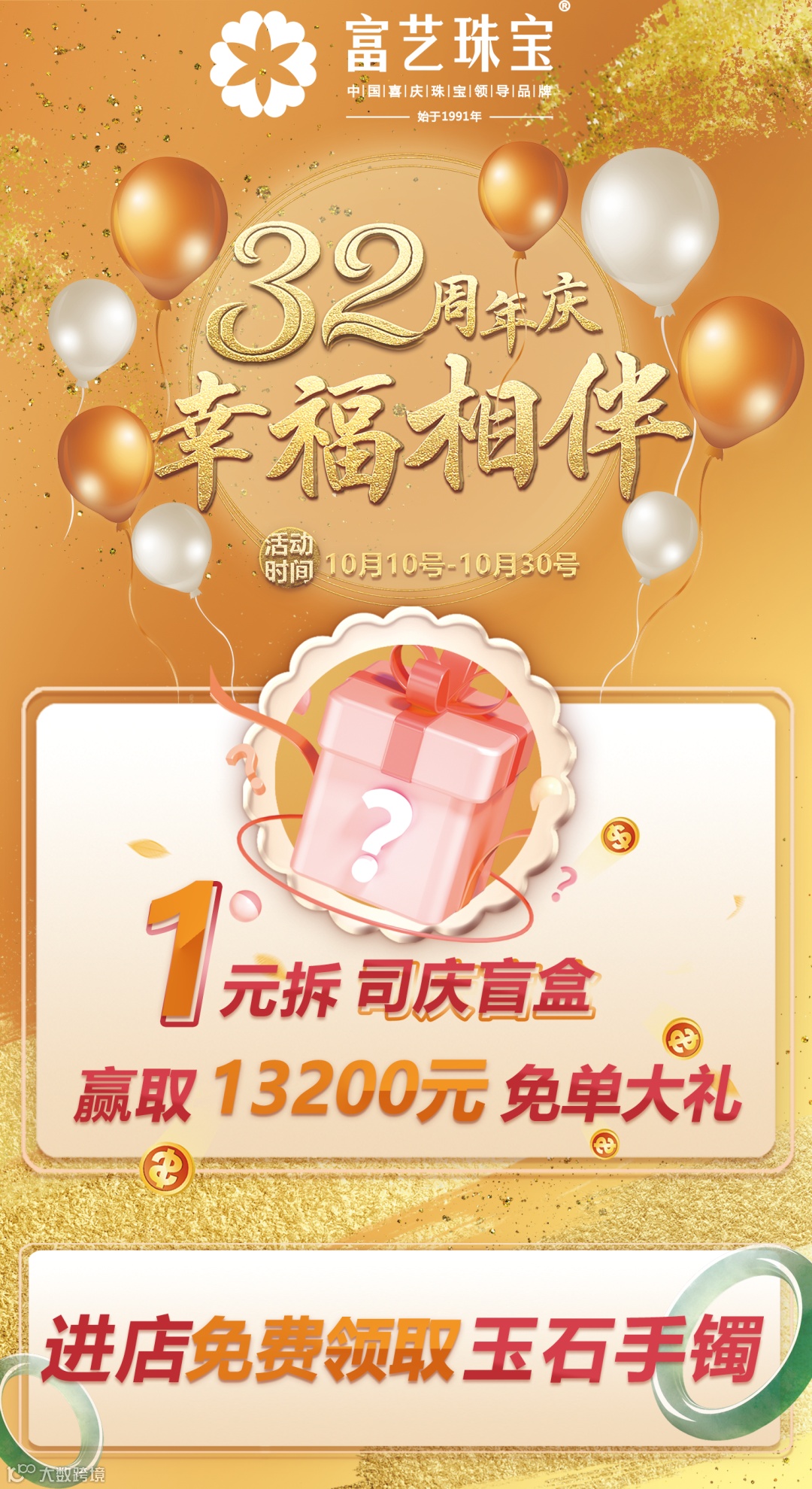 富艺珠宝32周年司庆大礼!进店免费领玉石手镯啦~