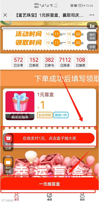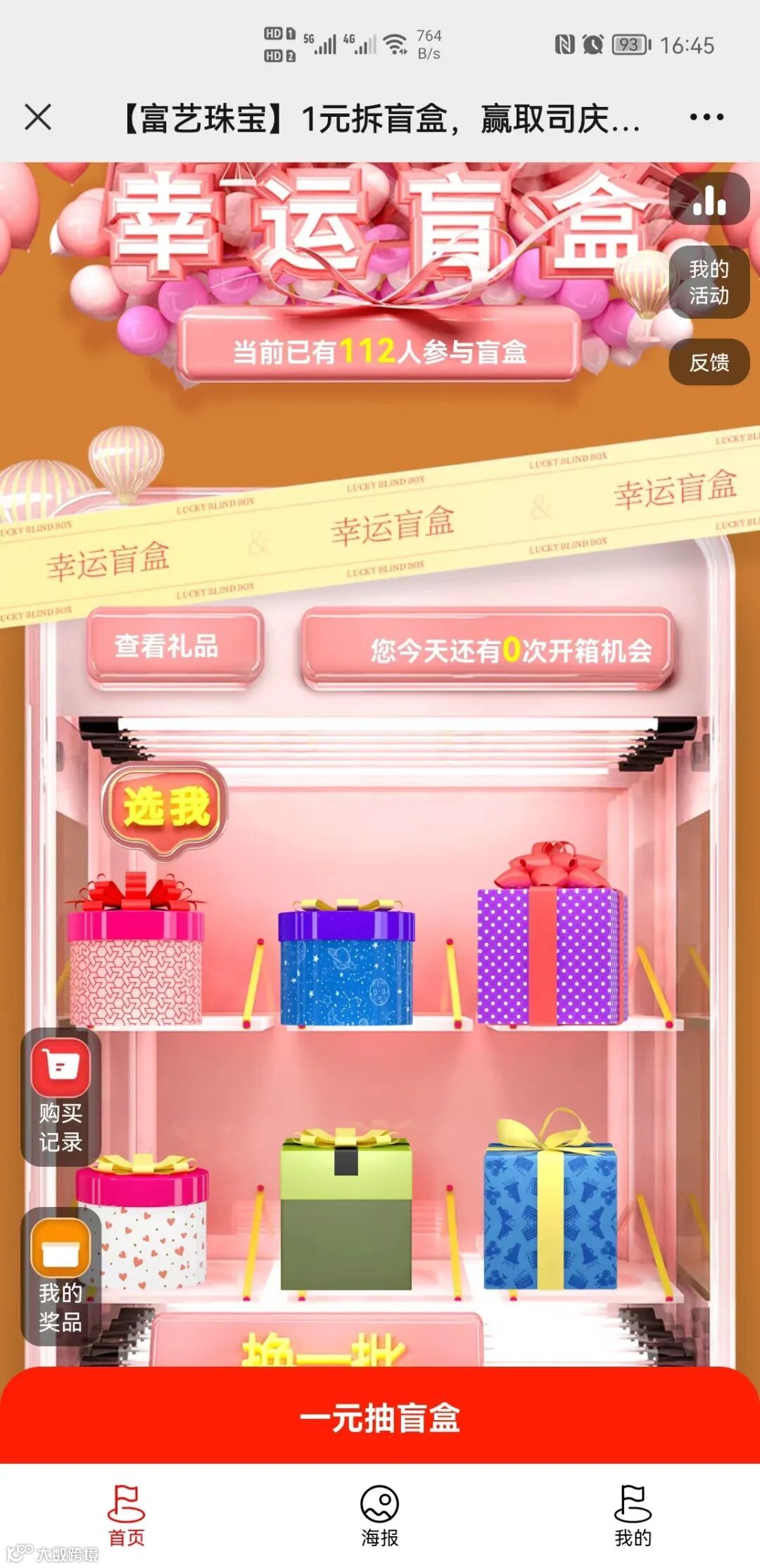 2:下拉页面到【幸运盲盒】,选择其中礼品点击即可完成拆礼盒。