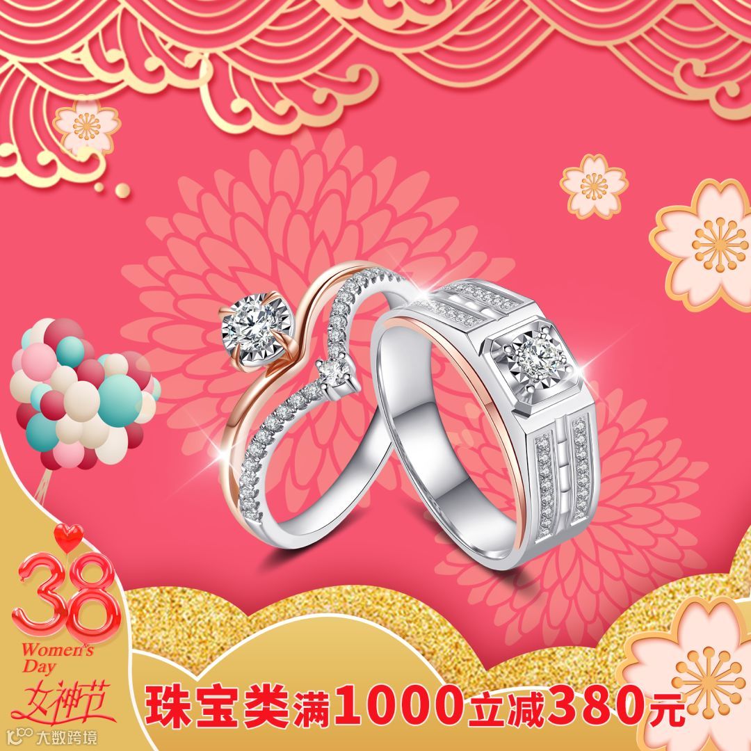 富艺珠宝携手新品“玫瑰之约”新品钻戒,买一送一,祝福天下女性3.8节日快乐!