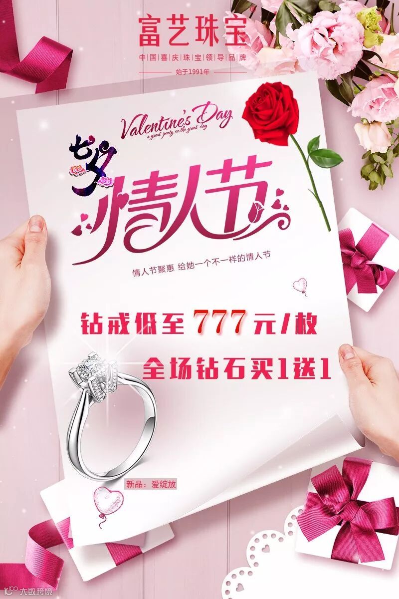 同时,本次七夕情人节活动,钻戒低至777元/枚,