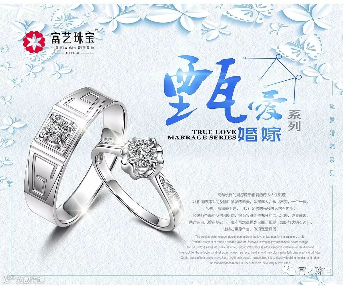 富艺珠宝隶属于香港富艺珠宝国际集团,始创于1991年,主要经营黄金、铂金、钻石、翡翠、18K、银器等首饰。自“富艺珠宝”品牌创立以来,传承并推广东方喜庆珠宝文化,一直专注于直营连锁、专业于喜庆首饰。