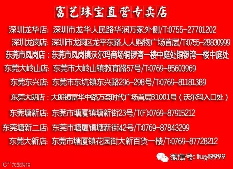 富艺珠宝大朗店衷心感谢广大顾客的信赖与支持,在未来的日子里,富艺珠宝将会以更优质的产品,更贴心的服务回馈给新老顾客朋友们。
