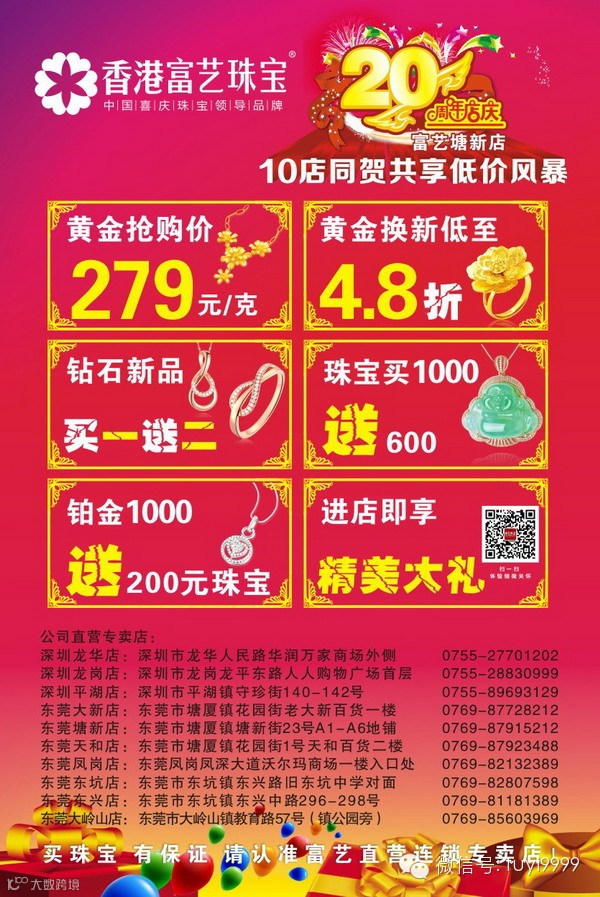 富艺塘新店20周年店庆,10店同贺共享低价风暴