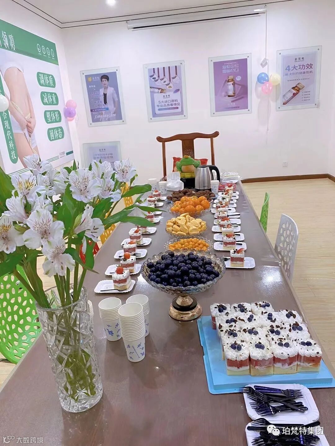 我们在公司进行茶话会,一起讨论公司的发展前景,讲解新领瘦的发展。