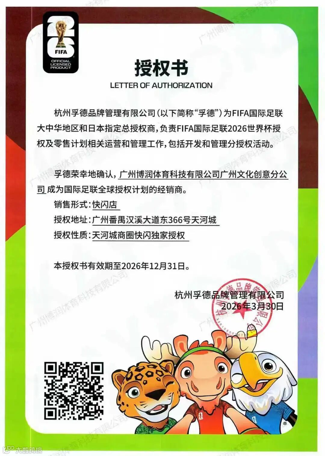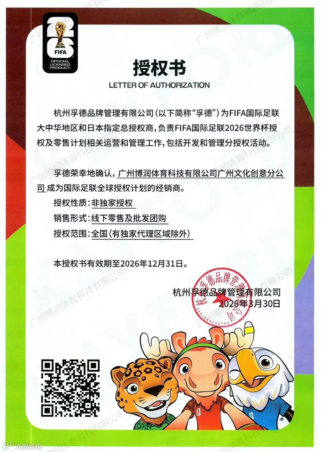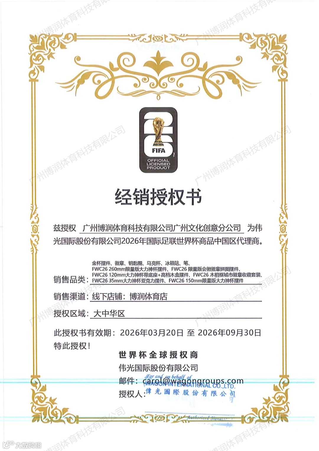而博润体育,作为国际足联官方授权的经销商,将把这场盛宴的官方周边产品,正式引入中国市场。每一件产品,都带有FIFA官方授权标识与防伪标,正品保障,授权链路完整,品质可信。