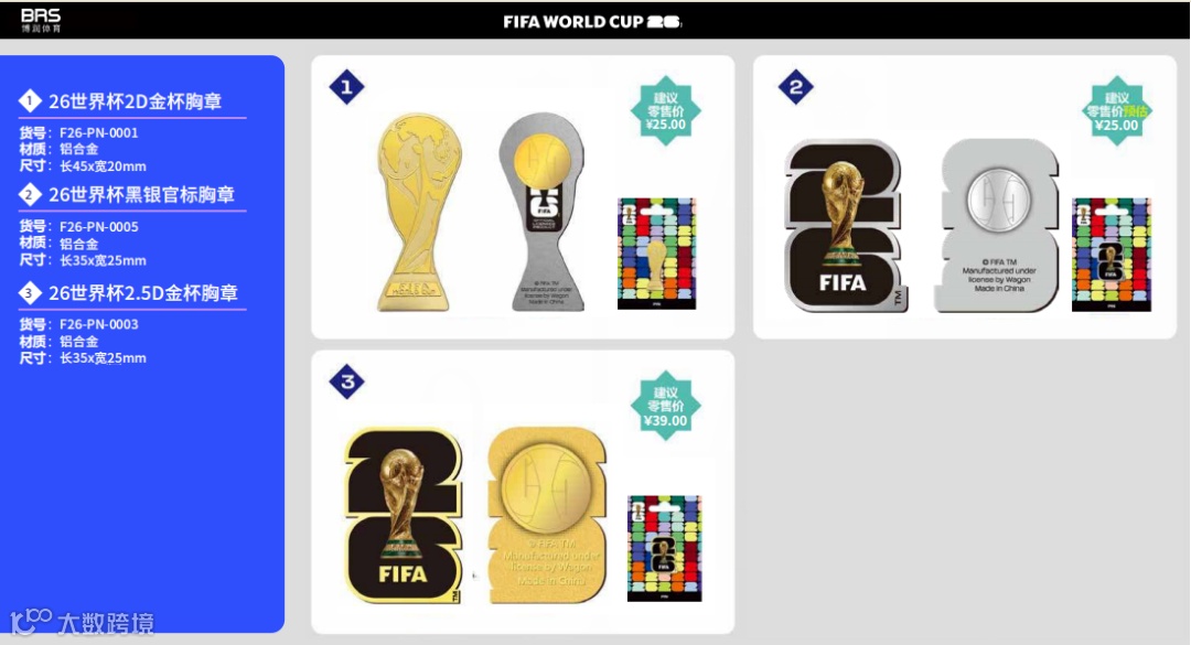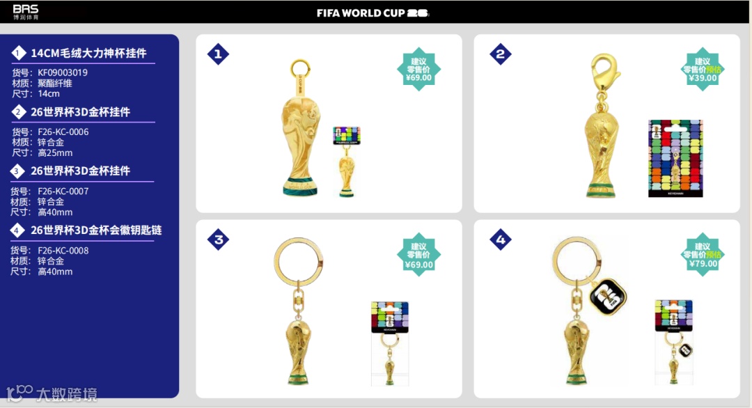 3、潮玩级:吉祥物徽章/钥匙扣、3D金杯小摆件、世界杯主题胸章冰箱贴等周边;
