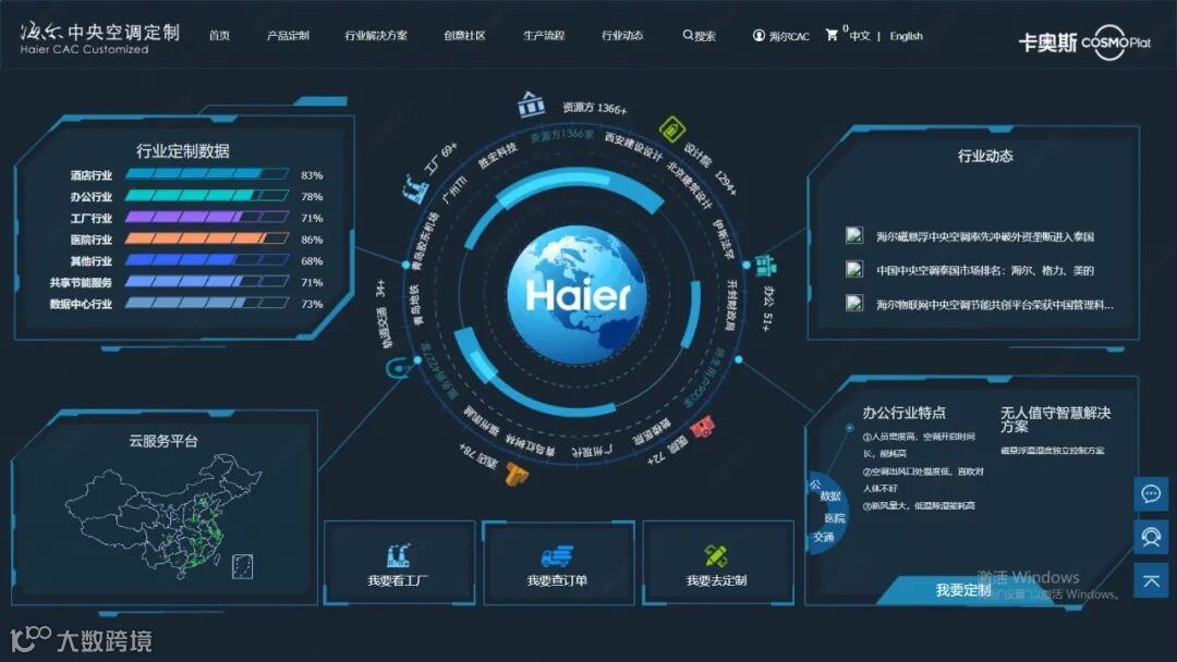 通过云服务系统将海尔物联多联机、磁悬浮中央空调等产品接入,为用户提供24小时管家式服务,实现了从单一产品节能到项目全生命周期节能,成为高技术服务推动制造业转型升级的样板。