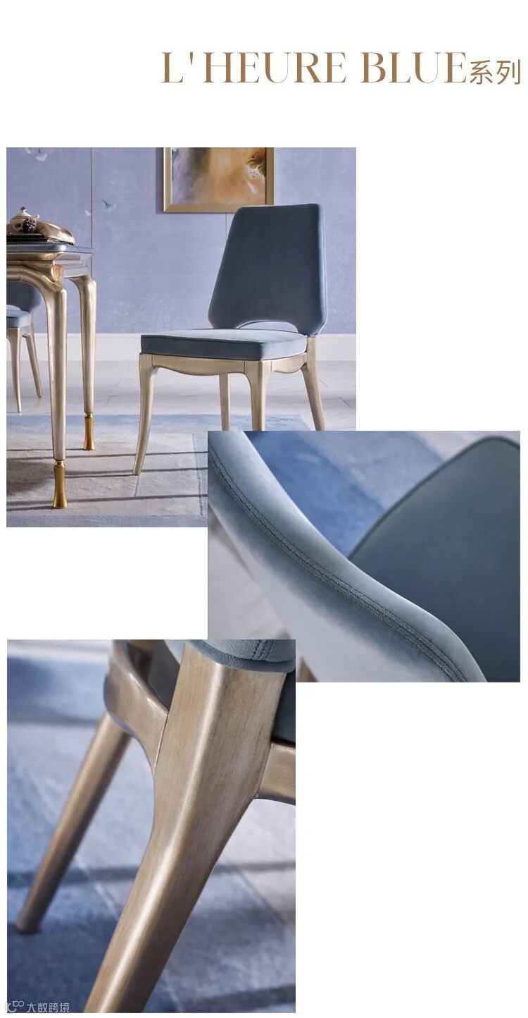 每种弥足珍贵的家居温度,都有一个来自远方的故事,设想自己漫步于海边,为家添上一抹浪漫色彩,餐厅的视觉感瞬间升温。亮金拉丝工艺打造:舒适的靠背与时尚的线条来得刚刚好,让每一天都充满幸福感。