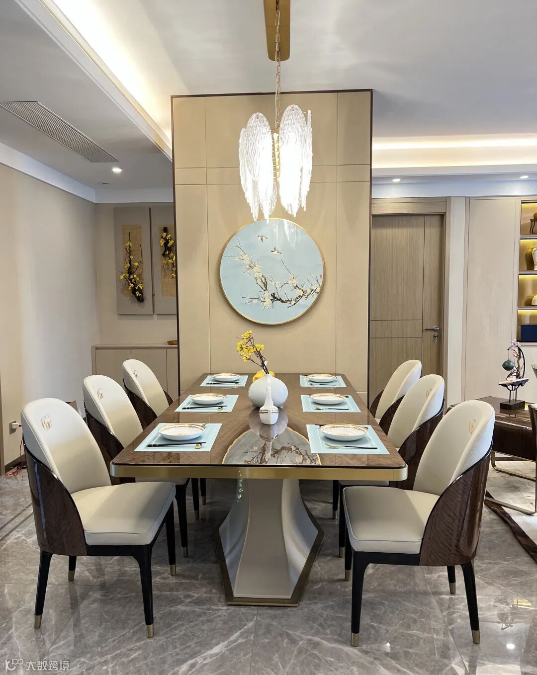 轻奢风格追求以最简洁的设计手法来打造奢华气派,任何一处造型上的简洁是为了赋予材质上的奢华,所谓材质的奢华并非指传统意义上的豪华与昂贵,而是指材质本身表现出的华丽感。