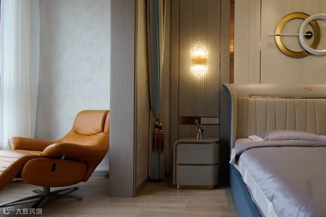 当美妙的乐声唱响主卧空间,舞动的音符在你的四周萦绕,落日的余晖化作空间主色调,时深时浅给卧室恰好的装点。
