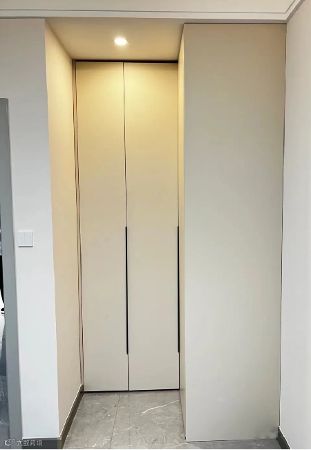 衣帽间的设计高级简约,灯光的嵌入让整体更加柔和,优雅~