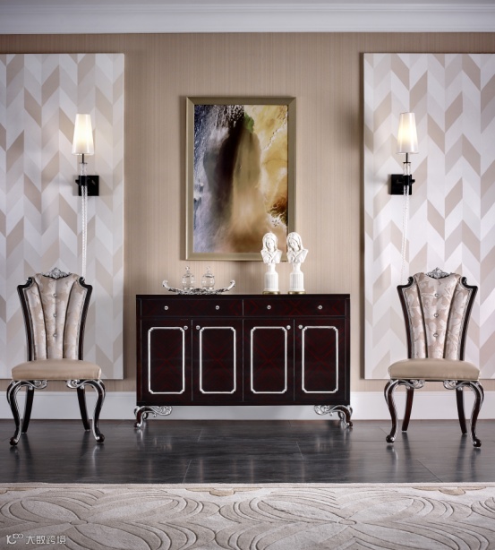 STARRY星辰系列餐边柜采用黑檀木皮与手工雕花银箔工艺,高光的柜体将光线折射的曼妙体现得淋漓尽致,散发出宛如珠宝盒般的高贵气息。