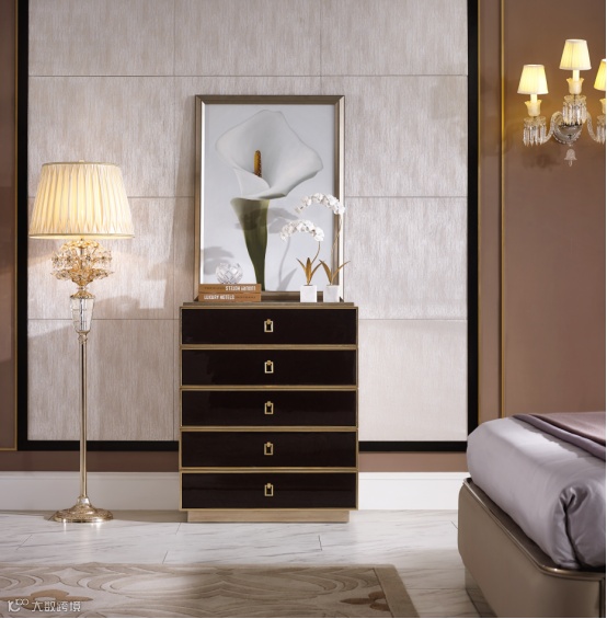 AMBRE琥珀星光系类柜体采用棕色胡桃树瘤材质,干净利落的线条,简单的轮廓、深色的基调,时刻散发着现代优雅的生活情调,含蓄清雅、和谐自然。