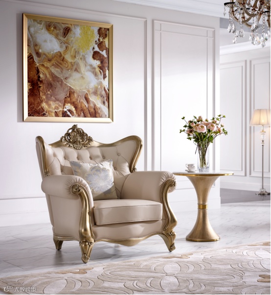 CHARISMA 系类单人沙发,采用亮金拉丝框架搭配皮质软包,在带来最佳舒适坐感的同时也展现出极为时尚的外观,细腻的纹理中泛着光泽,让您坐下的瞬间便有优雅姿态。