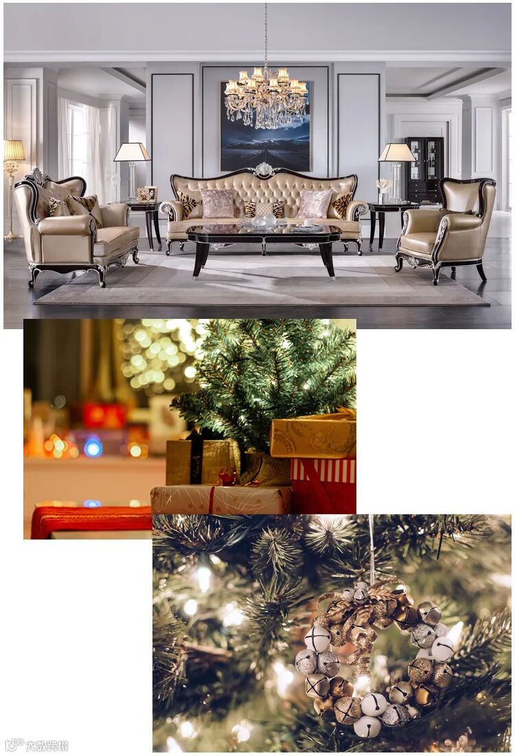 想在家中营造圣诞气息,可在客厅放置一棵圣诞树,回家的第一瞬间就能收获浓郁的节日气氛,心情也会瞬间升温。