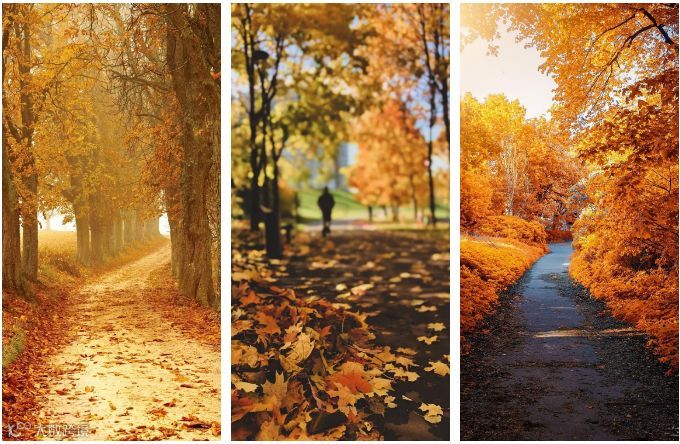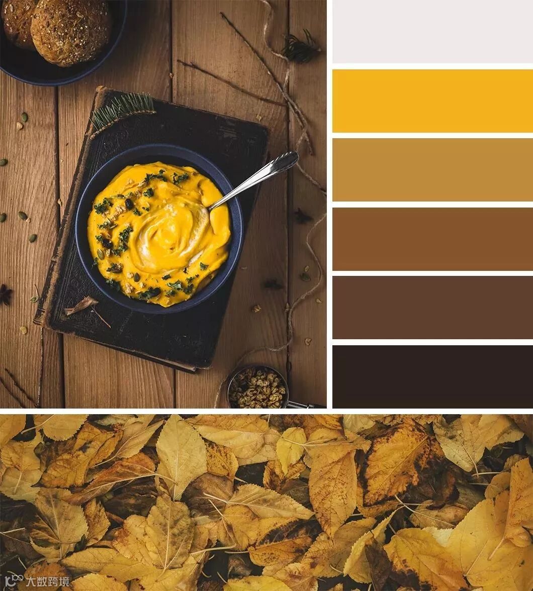金秋十月,暖色系当道,不同的暖色参差错落,形成一幅至美画卷,给人以温暖的视觉感。
