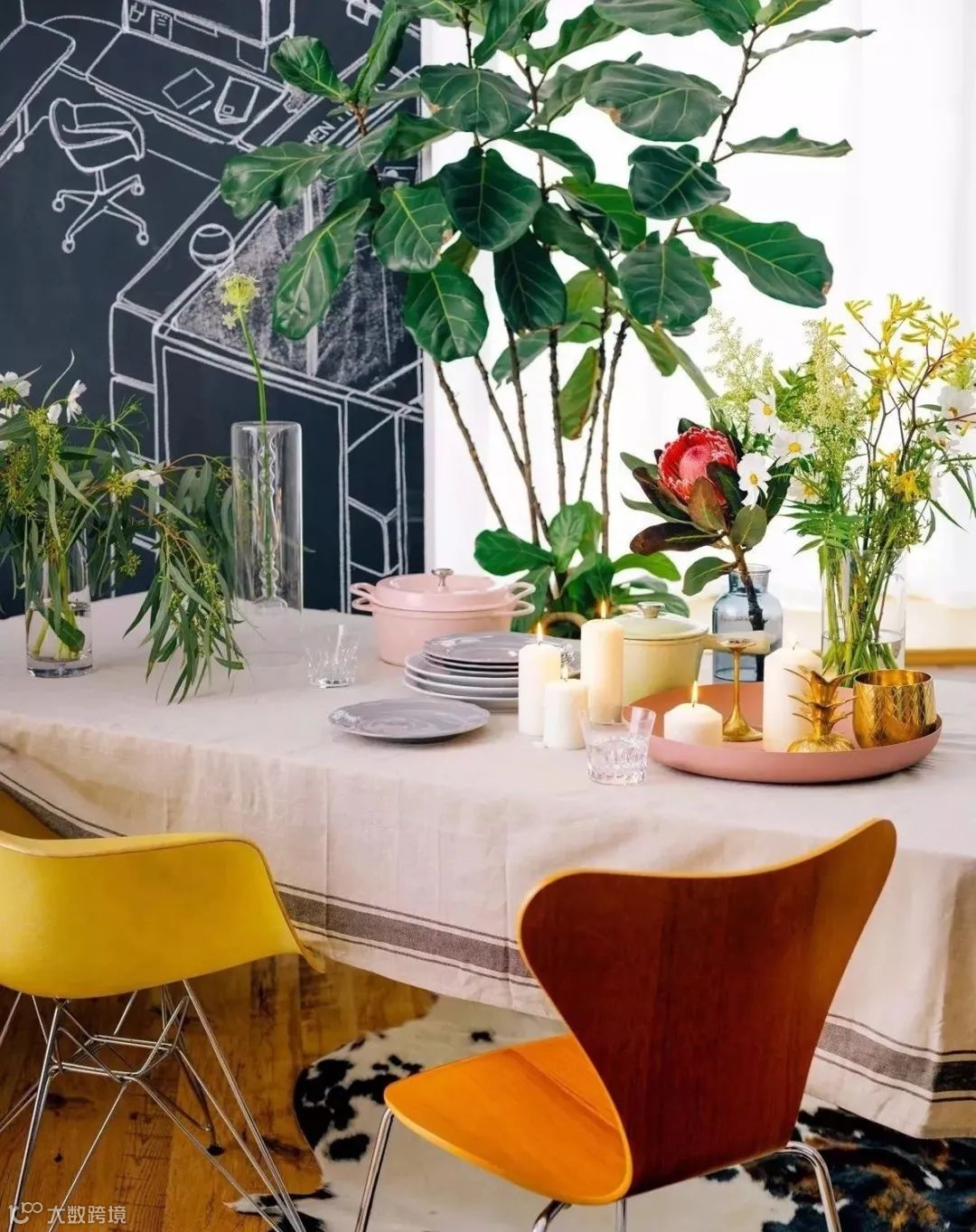 餐厨处的涂鸦墙,是特意为家人和朋友设计的,黑板墙上写着可以提供的食物与饮料,黑板也能满足女儿涂鸦的乐趣,同时也是家人、朋友间互相留言的情感交流处。