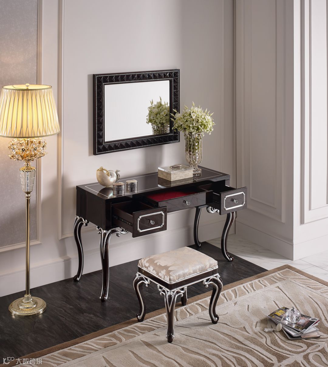 而妆台及妆凳的弯曲造型又类似优雅的淑媛
