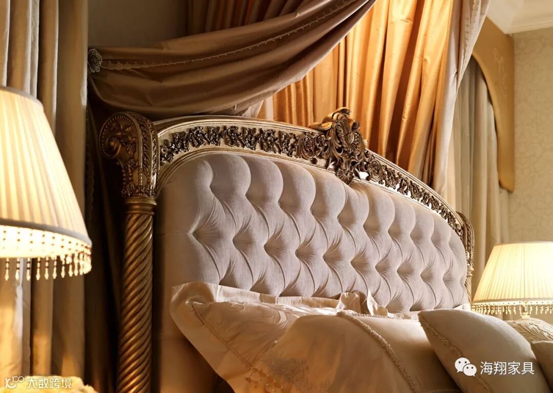 搭配对称手工雕琢的亮光玫瑰金做旧床头柜