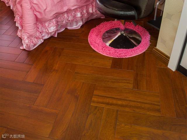选择长条状的木地板,在铺设时,将两条木地板的顶端成90°拼在一起,形成人字形。而且这种方法不止适用于木地板,像瓷砖、文化石等都可以用这种方法进行铺贴。