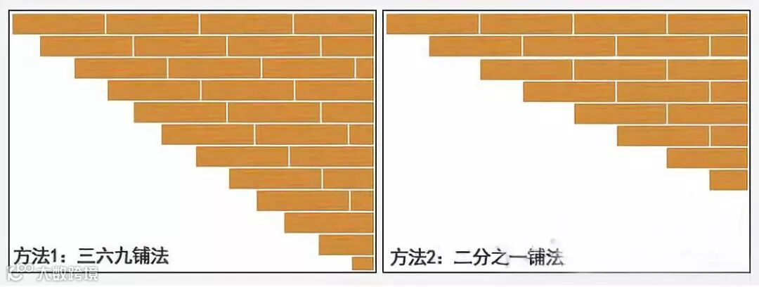 二分之一铺法铺好之后,两块地板的短边接缝都位于上下两块地板之间,看上去就像一个工字,所有接缝都是隔行对齐的。但是这种铺法看上去较为呆板。