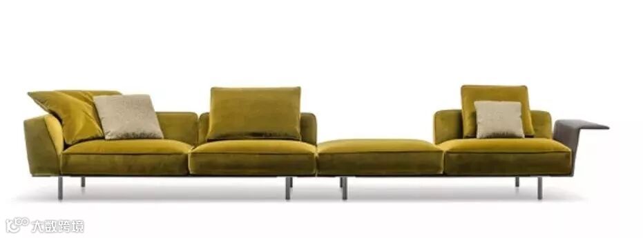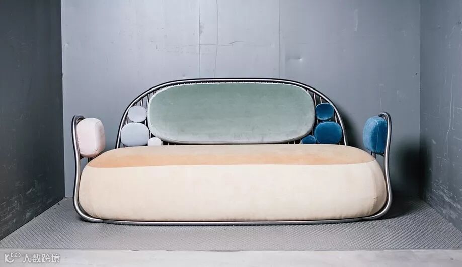 Cotone沙发采用挤压铝框架,有四种颜色:灰蓝色、红色、香槟色和石墨色。它宽大的衬垫可以用布料、皮革或天鹅绒装饰,这似乎是今年的趋势。