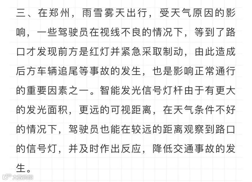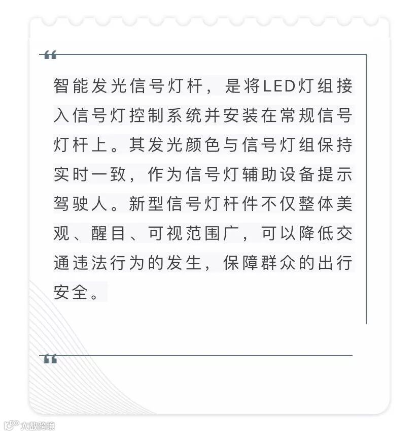 四、智能发光信号灯杆大大增加了信号灯的显示面积,对于一些违法驾驶员来说,对其有一定的心理震慑作用,可以从一定程度上减少交通违法的发生,保证道路交通的畅通、有序。