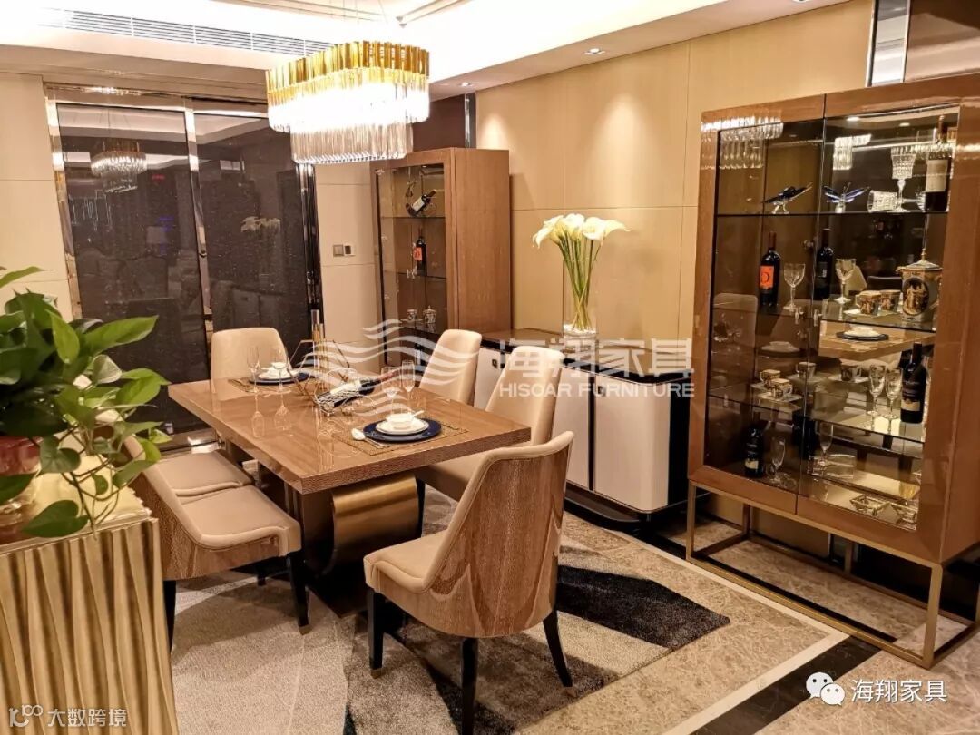 餐桌将这份优雅延续到进餐氛围。餐椅紧凑地排列着,无形中可以拉近一家人的心理距离,吃饭是放松的时间,我仿佛看到一家人其乐融融的画面。