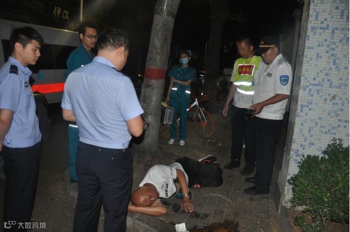 值夜班的巡防员担心小伙睡在路上不安全,就打算把他叫醒,结果叫了半天小伙都没有反应,就听他嘴巴里一直念叨。