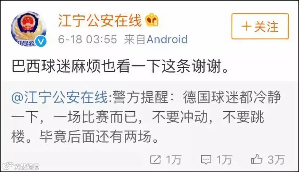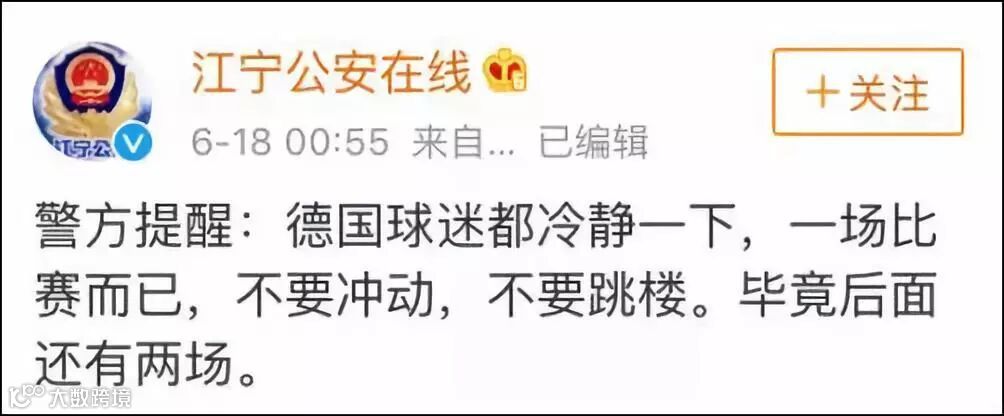 警察蜀黍友情提醒:请德国球迷冷静一下,后面还有两场比赛呢,别冲动……