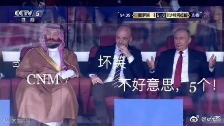 首场比赛并没有让广大网友失望,俄罗斯一个5:0踢出了傲娇的“普京摊”。