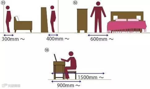 2 家具之间的通道:600mm以上,这个是需要保证的最小尺寸。如果是经常利用的主通道或是有需要搬运东西的通道的话最好能够留出800mm以上的空间。