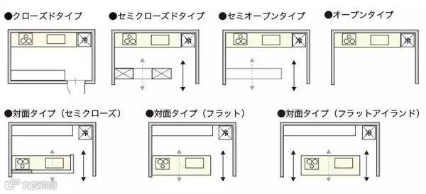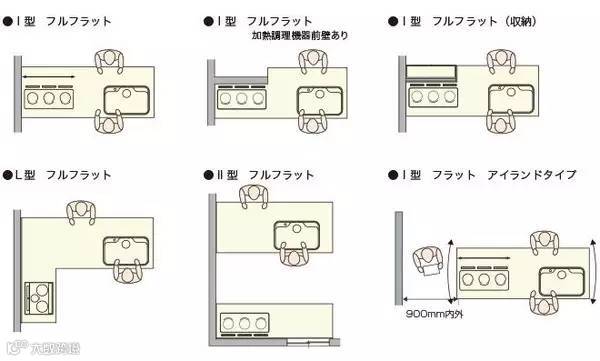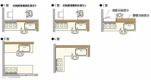 【对面式】对面式布局考虑到厨房与餐厅的交流,在操作台留出一定的空间作为小吧台使用,因为较宽,奢侈的做到900以上为佳。