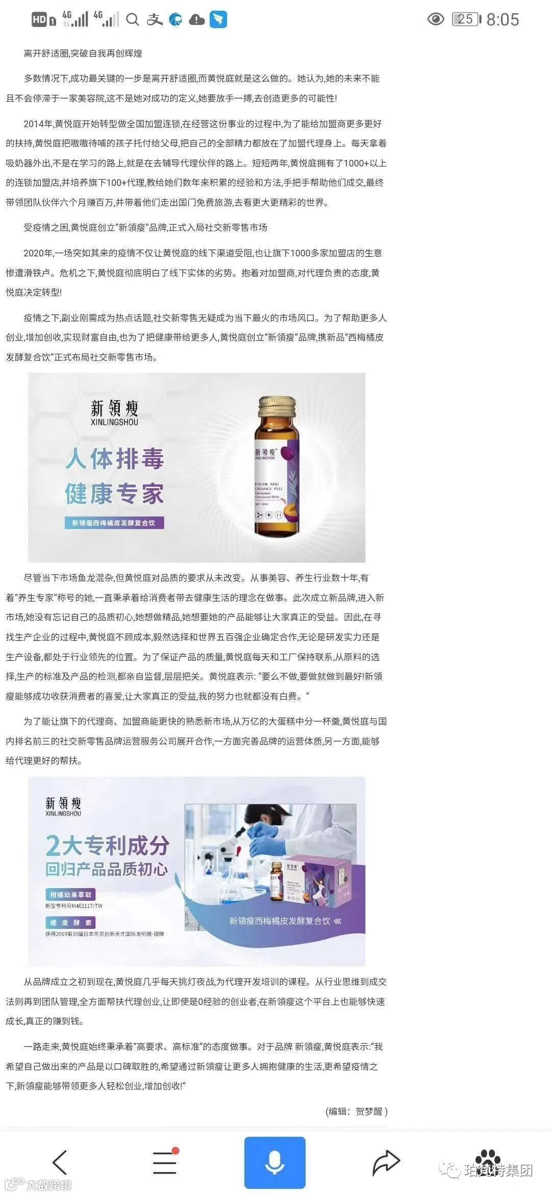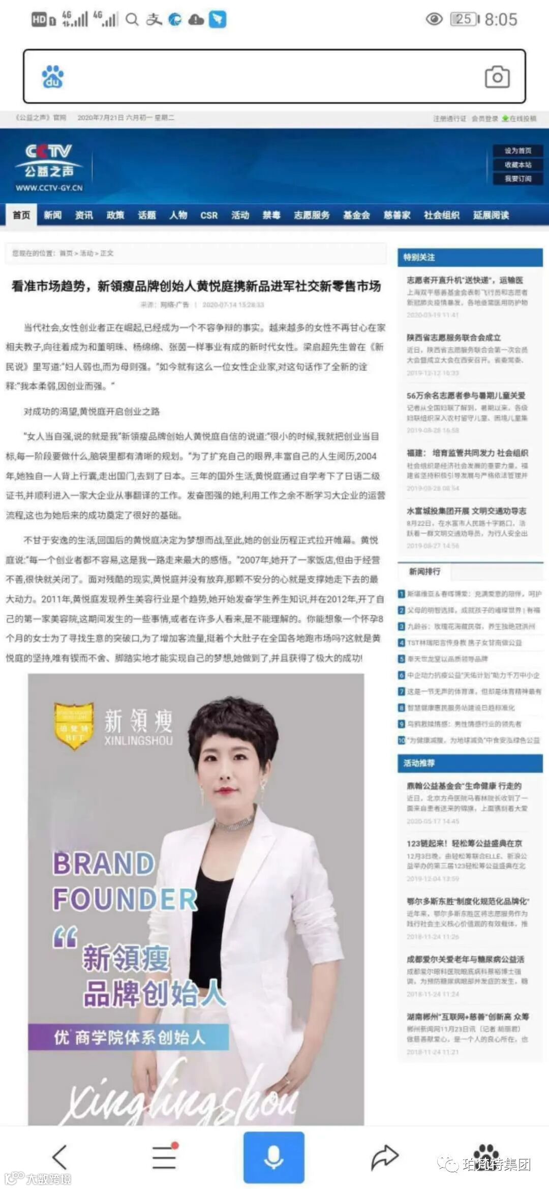 CCTV对新領瘦的认可,是对创始人黄悦庭的认可,更是对产品品质的认可。