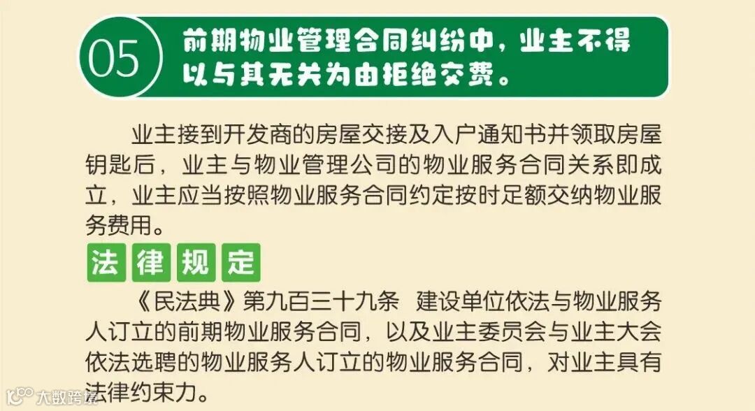 第九百四十四条规定,业主应当按照约定向物业服务人支付物业费用。物业服务人已经按照约定和有关规定提供服务的,业主不得以未接受或者无需接受相关物业服务为由拒绝支付物业费用。