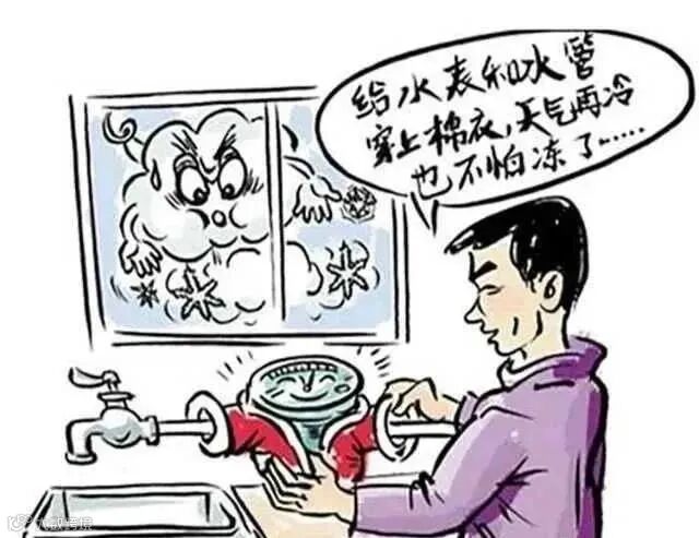 用水设施保暖防护:当气温降至零摄氏度以下时,请提前对家中的水管、水表、水龙头等用水设施进行保暖防护。可用棉麻织物、泡沫塑料等材料包裹裸露在外的水管,水表可安装在室内有保温措施的地方或用保温材料覆盖。