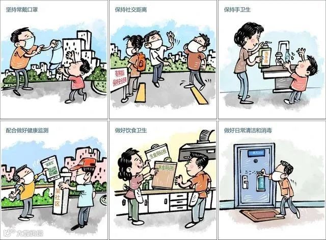 1、继续做好家庭和家庭成员防范新冠肺炎疫情工作,不懈怠、不大意,特别是在乘坐公共交通工具、出入人员聚集性场所时应注意戴口罩、勤洗手、保持一定的社交距离。