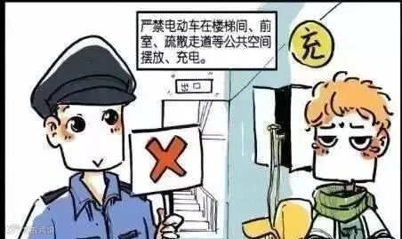 三、省消防安全委员会2017年9月26日发布的《电动车停放、充电场所和民用建筑燃气使用场所消防安全须知》,要求严禁在住宅建筑疏散通道、安全出口、楼梯间(门洞口)、楼层楼道、电梯前室等部位停放、充电。