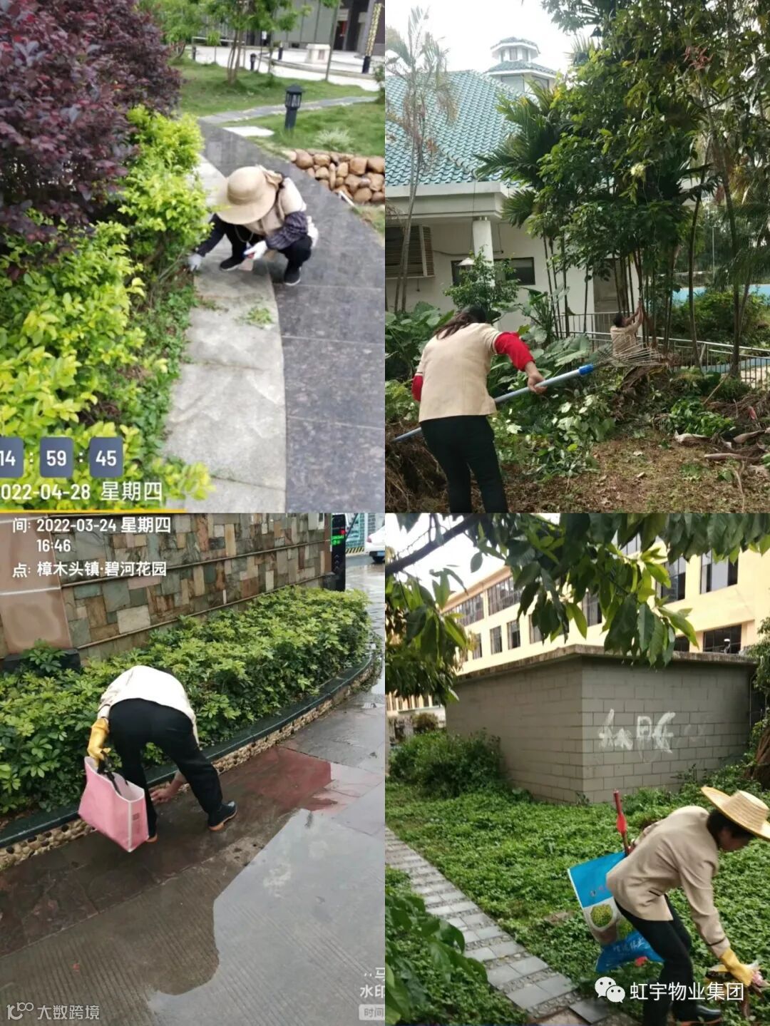 (定期清除苑区绿化带杂草、垃圾、枯叶……)