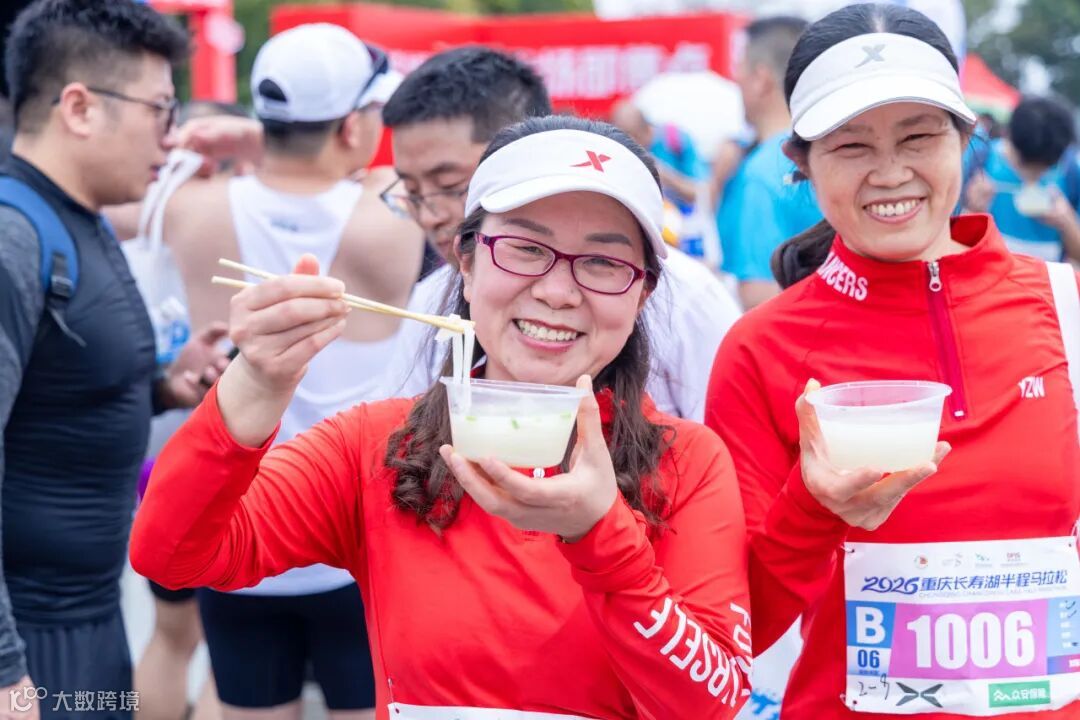 冲过终点线,还有暖心的美食相伴。热气腾腾的长寿米粉、鲜醇浓郁的长寿鱼汤……长寿用独有的热情,用最地道的风味,犒赏每位选手的一路坚持。