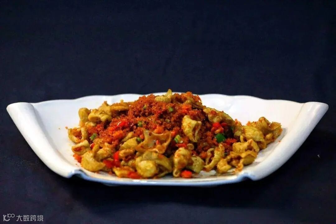 这道菜的发明来源于讴乐民间,是用新鲜的猪大肠加工洗净、晾干、剁碎后,拌上面粉、红辣椒和玉米面、盐,拌匀后装坛腌制。当辣椒和玉米中的乳酸肆意地发酵,肥肠调出酸味,再从罐坛中取出肥肠粉,揉成团状,和时令蔬菜同炒,食之令人胃口大开,别有一番风味。