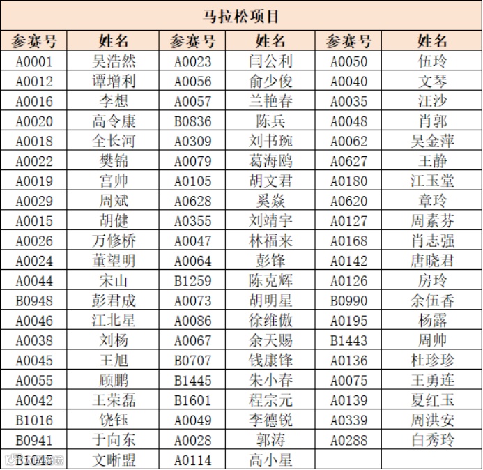 1.马拉松项目:男子(净计时):03:00:00(不含)以内,女子(净计时):03:30:00(不含)以内;