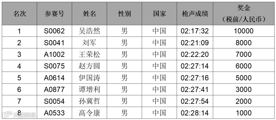 注:根据竞赛规程:破孝感马拉松赛会纪录奖