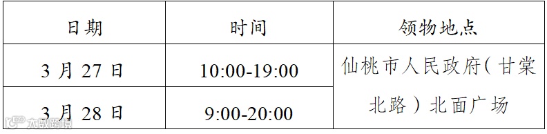 领取地点:仙桃市人民政府(甘棠北路)北面广场