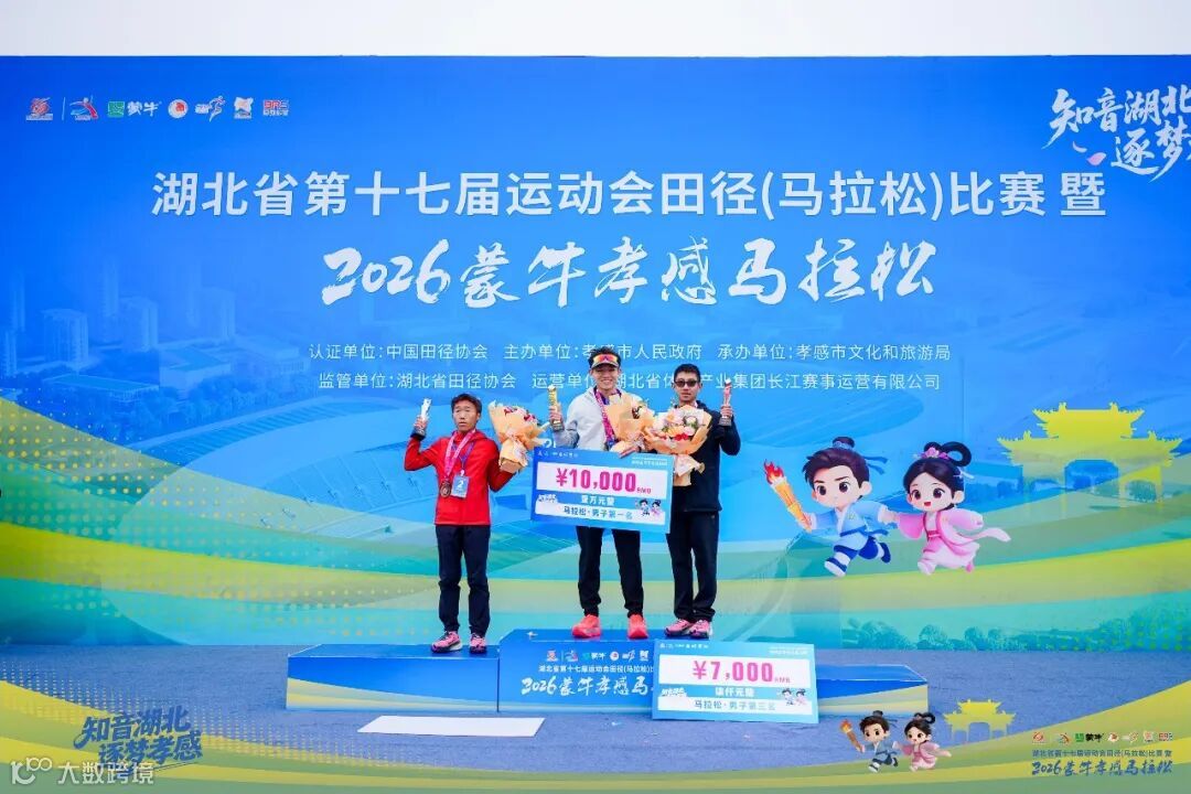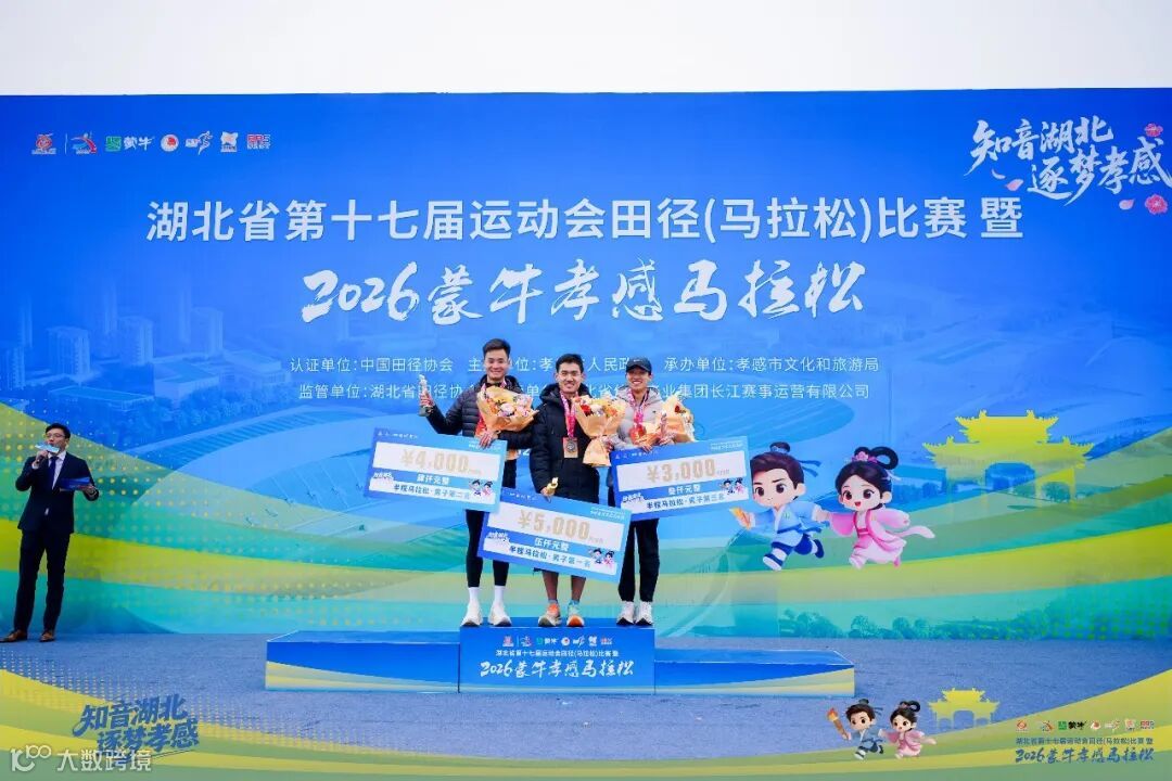公开组方面,来自湖北咸宁的选手吴浩然以2小时17分32秒的成绩获得2026蒙牛孝感马拉松马拉松项目男子组冠军,来自湖北武汉的刘军和来自福建龙岩的王荣松分别夺得亚军和季军。