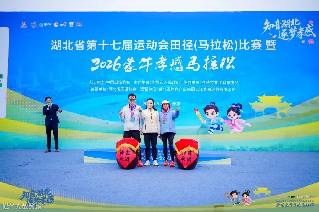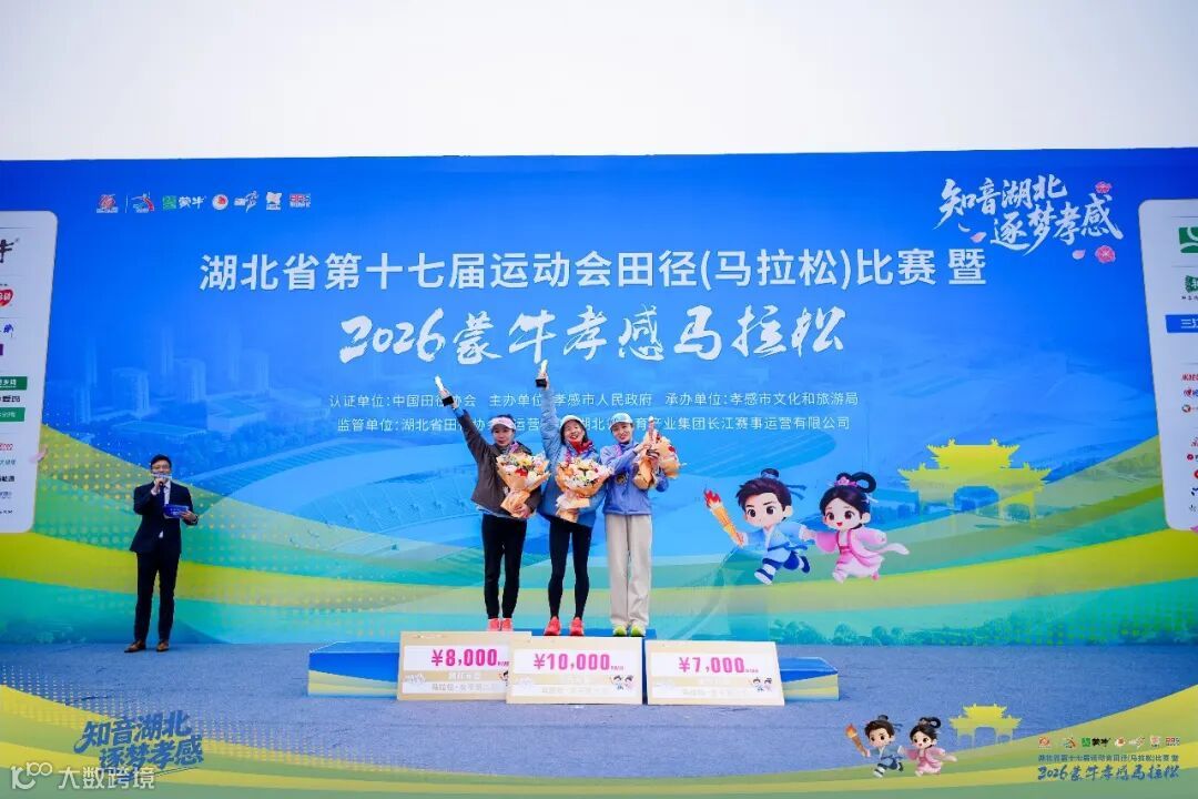 来自湖北武汉的选手熊娟以2小时39分53秒的成绩获得2026蒙牛孝感马拉松马拉松项目女子组冠军并打破孝感马拉松女子赛会纪录,来自湖北武汉的伍玲和来自河北邯郸的肖郭分别夺得亚军和季军。