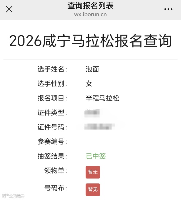 1.2026咸宁马拉松于2026年3月6日17:00公布抽签结果,可在微信公众号咸宁马拉松的“中签查询”查看抽签结果,显示中签者即为获得参赛名额。参赛名额仅限本人参赛,不允许转让,不可更改参赛项目,放弃比赛的,报名费不予退还。显示未中签者报名费将于抽签结果公布后10个工作日内,按原支付方式路径退回。所有选手报名时预留的手机号码,均会收到赛事报名抽签结果的短信通知。