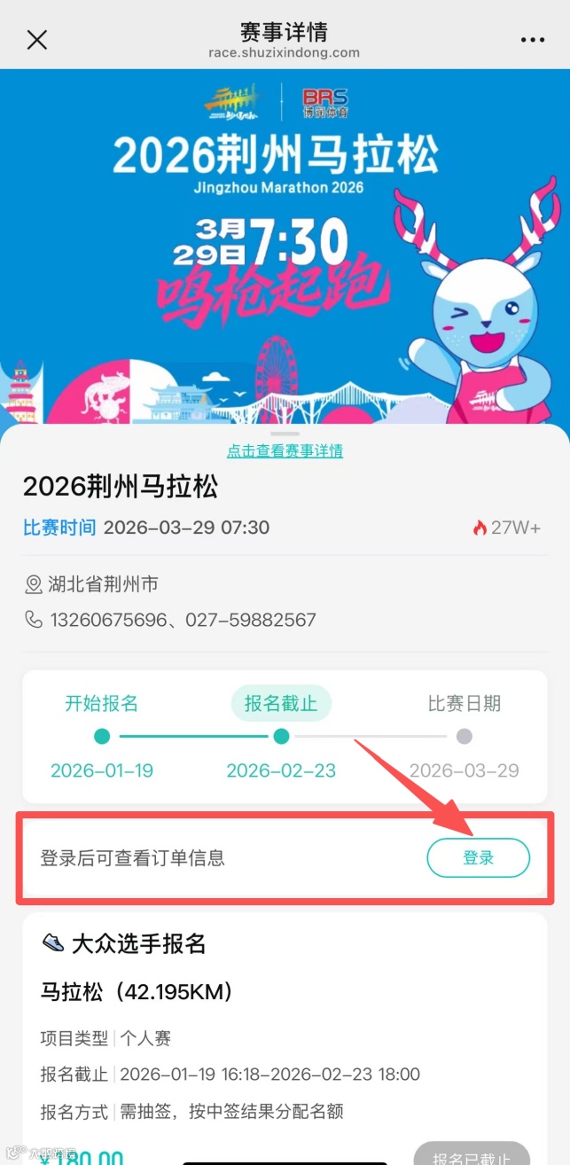 在数字心动APP报名的选手可扫描下方二维码或登录数字心动APP后,点“我的—我的订单”,查看2026荆州马拉松订单状态,中签选手点击“付款”完成支付即可。