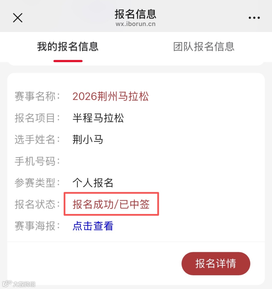显示“报名成功/已中签”的选手,即成功缴费,并获得2026荆州马拉松参赛资格